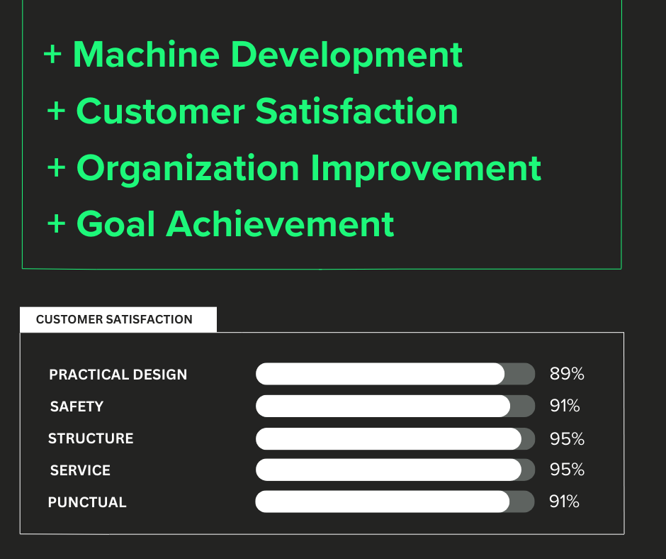 3. ความพึงพอใจของลูกค้าคือสิ่งสำคัญที่เรายึดถือ เรามุ่งมั่นในการบริการไม่ว่าจะเป็นก่อนหรือหลังการขาย เพื่อให้แน่ใจว่างานหรือเครื่องจักรของเราจะสามารถใช้งานได้อย่างมีประสิทธิภาพสูงสุด ตอบสนองความคิดเห็นของลูกค้า ส่งผลให้ลูกค้าพอใจ ผลตอบรับดี ได้คำชมกลับมาเสมอๆ