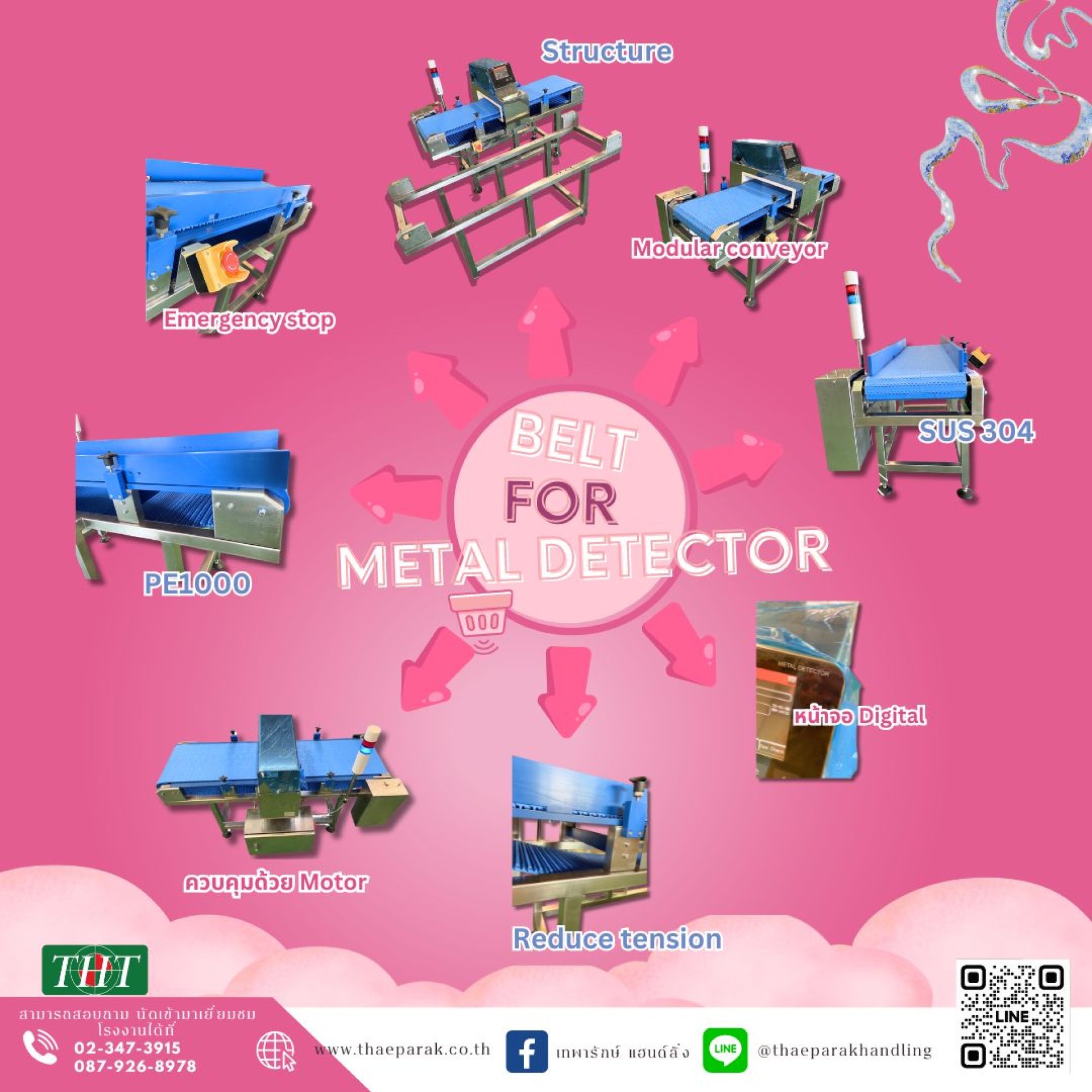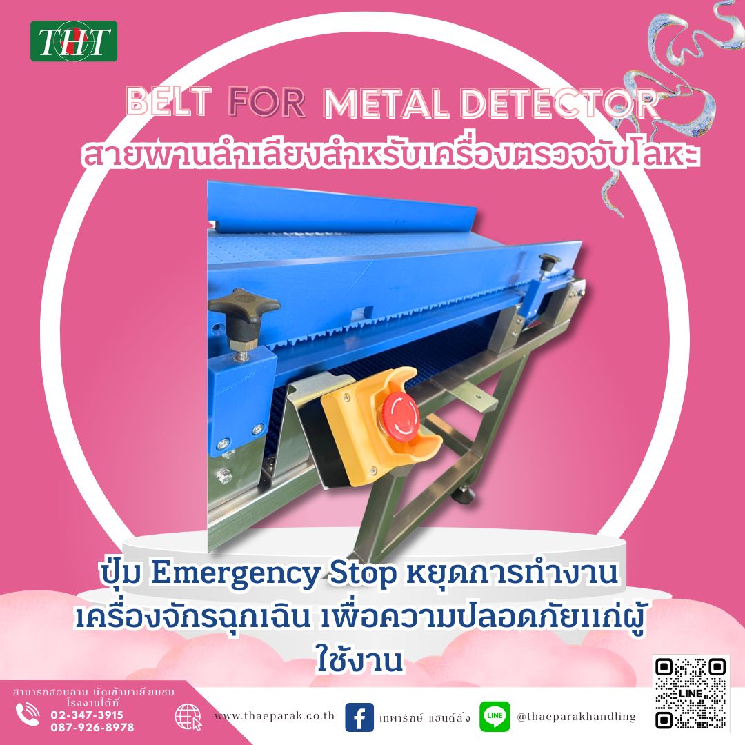 มาพร้อมปุ่ม Emergency stop หยุดการทำงานของสายพานลำเลียงกรณีฉุกเฉิน