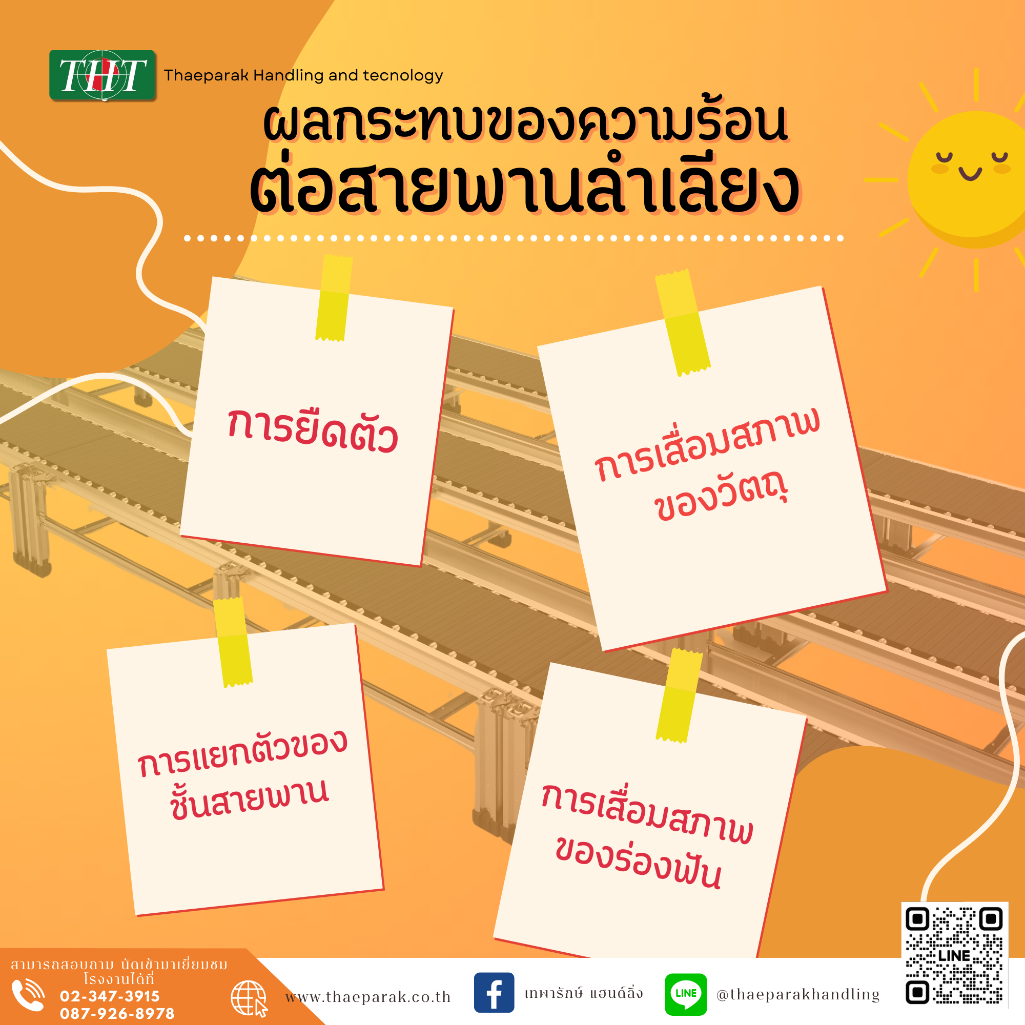 ในช่วงฤดูร้อนที่มีอุณหภูมิตั้งแต่ 30-40 องศาเซลเซียส สายพานลำเลียงอาจได้รับผลกระทบจากความร้อนสูง ดังนั้น จึงจำเป็นต้องมีการดูแลและบำรุงรักษาเป็นพิเศษ เพื่อให้สายพานลำเลียงทำงานได้อย่างมีประสิทธิภาพและยืดอายุการใช้งาน