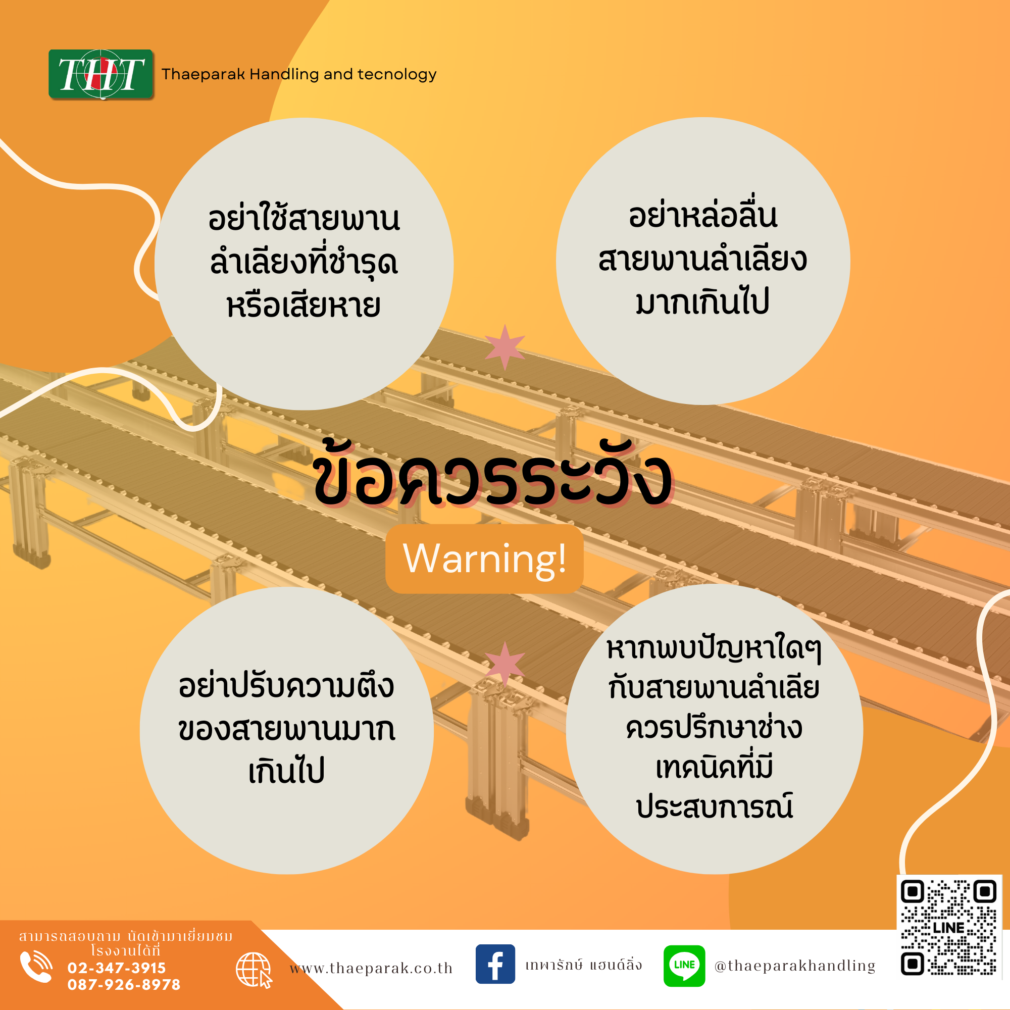 - หากพบปัญหาใดๆ กับสายพานลำเลียง ควรปรึกษาช่างเทคนิคที่มีประสบการณ์