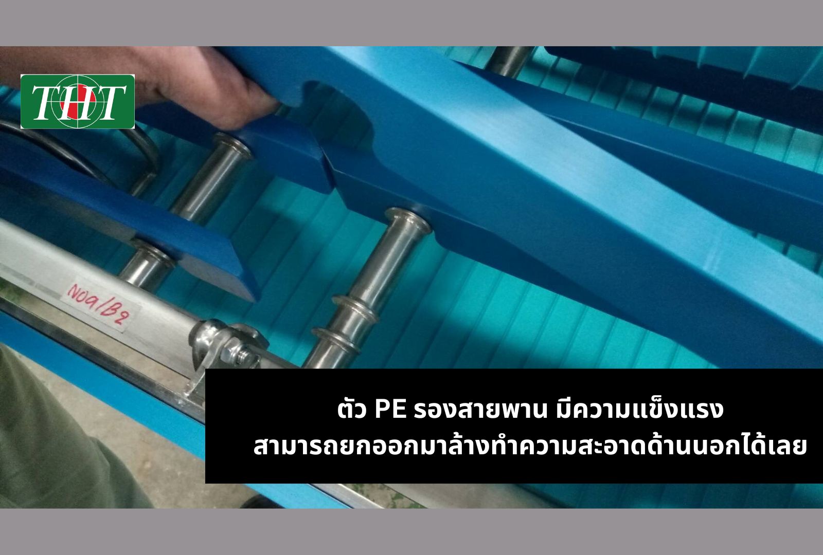 สำหรับตัวแท่งพลาสติก PE ที่ใช้รองสายพานก็สามารถยกถอดออกมาล้างทำความสะอาดได้เลย